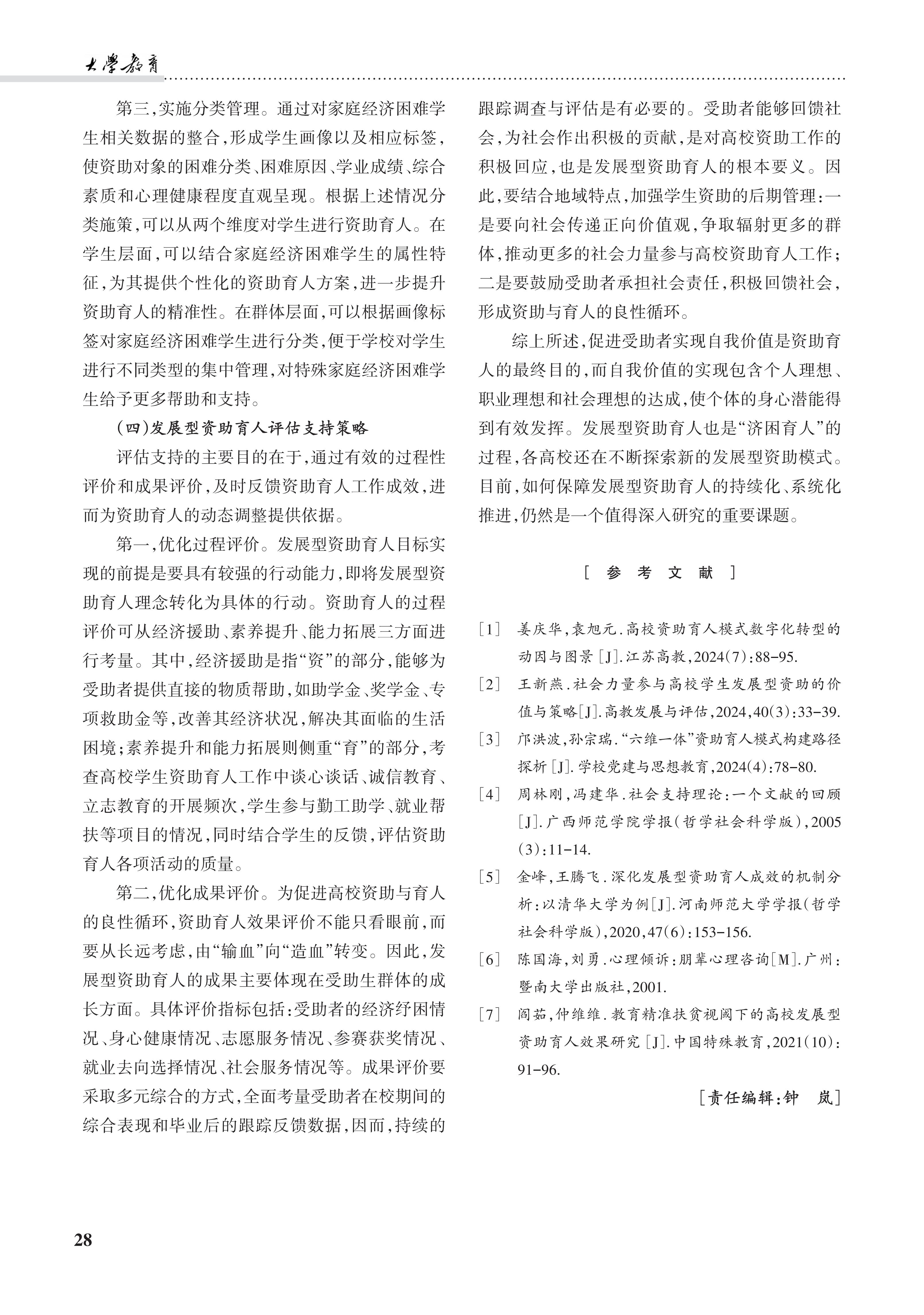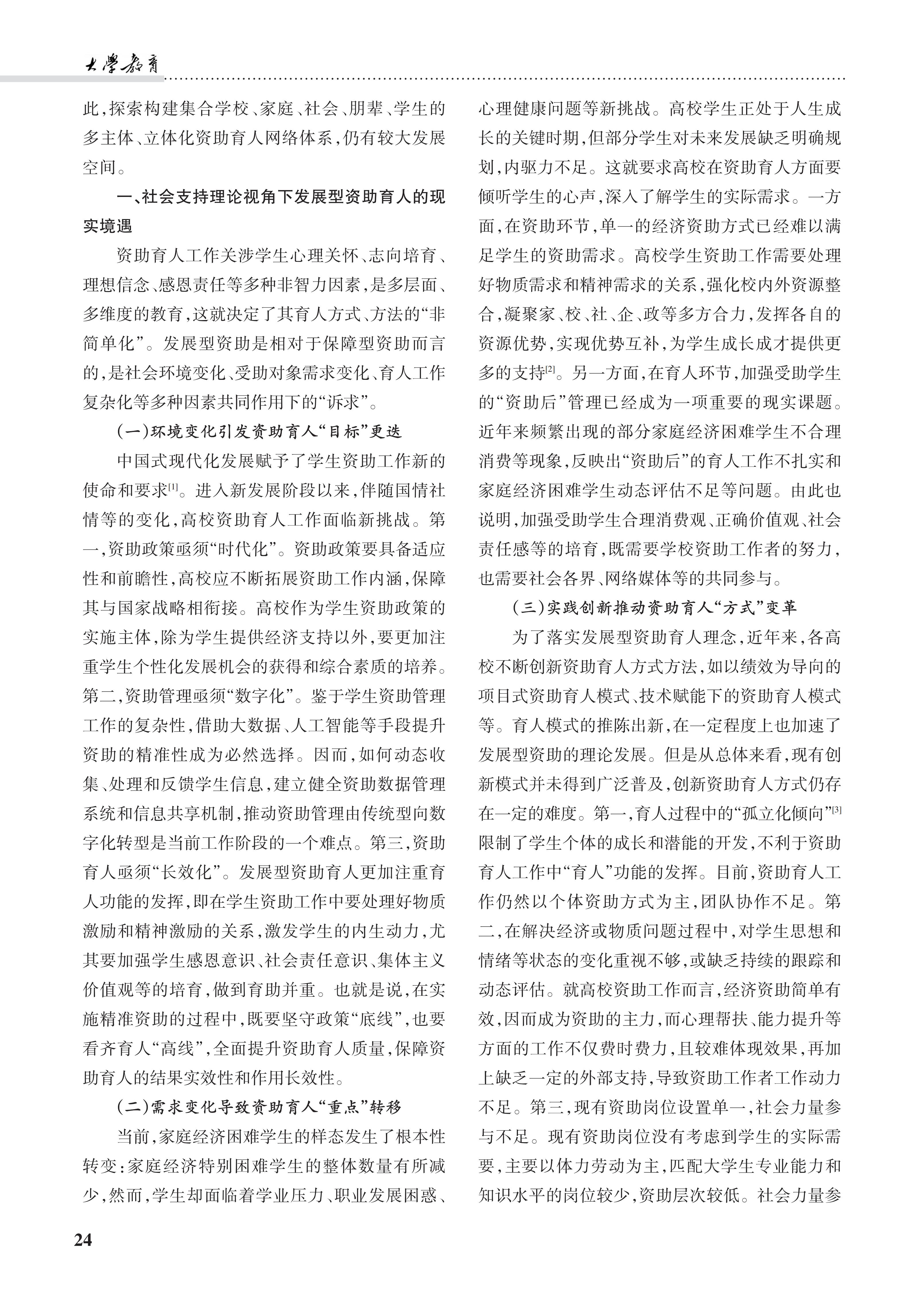 [2025-17]境遇·样态·策略:社会支持理论视角下的高校发展型资助育人新探