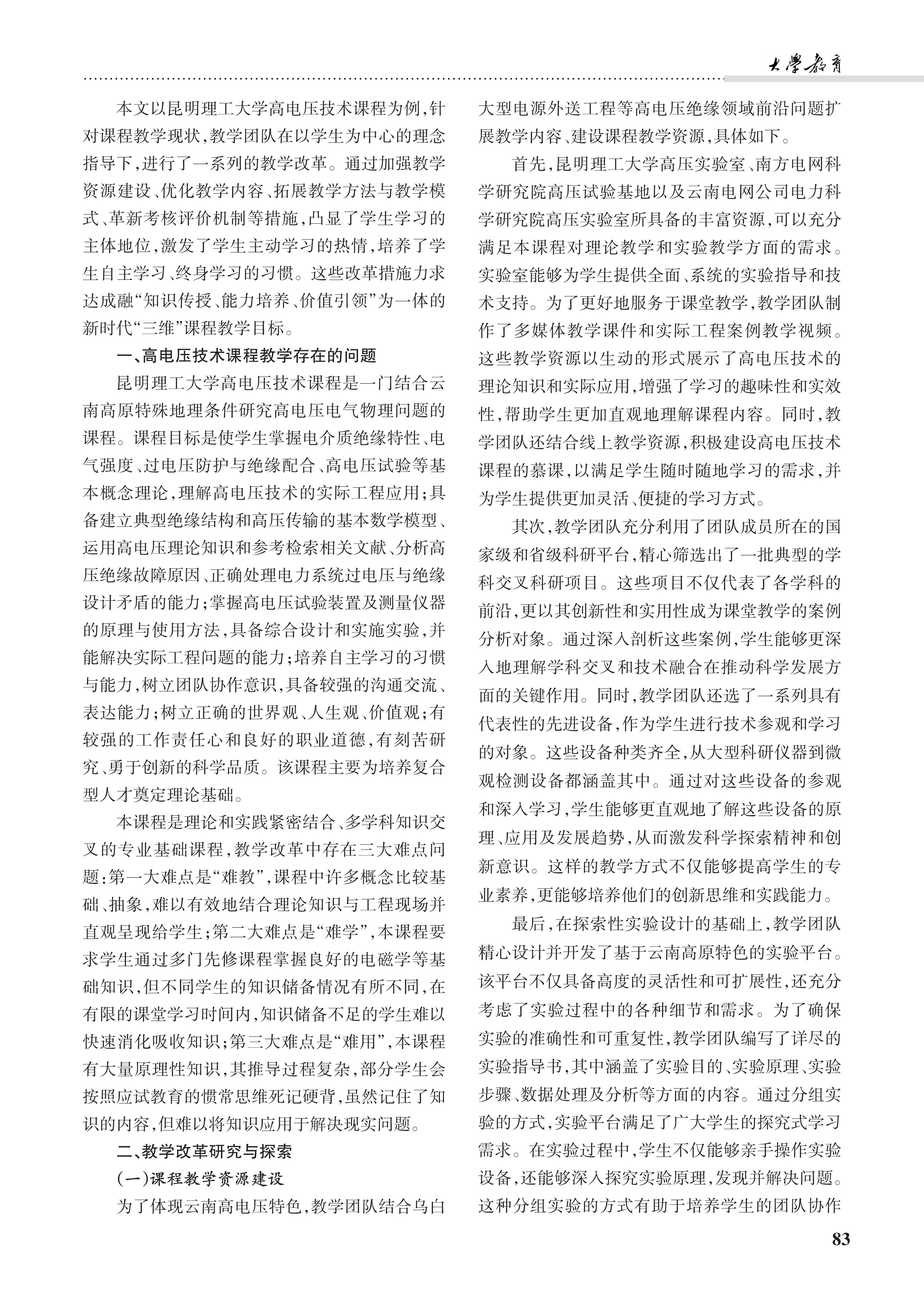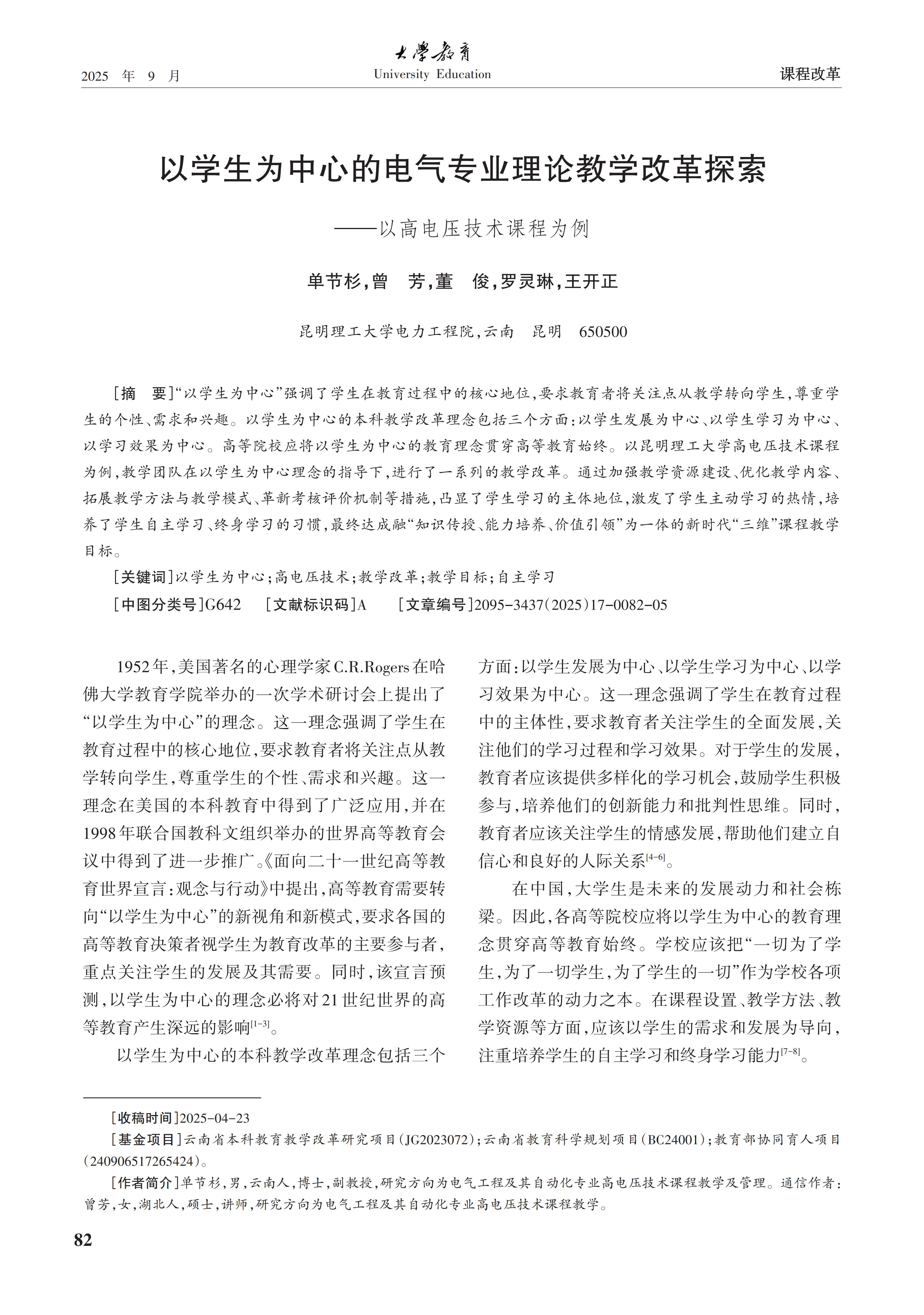 [2025-17]以学生为中心的电气专业理论教学改革探索——以高电压技术课程为例