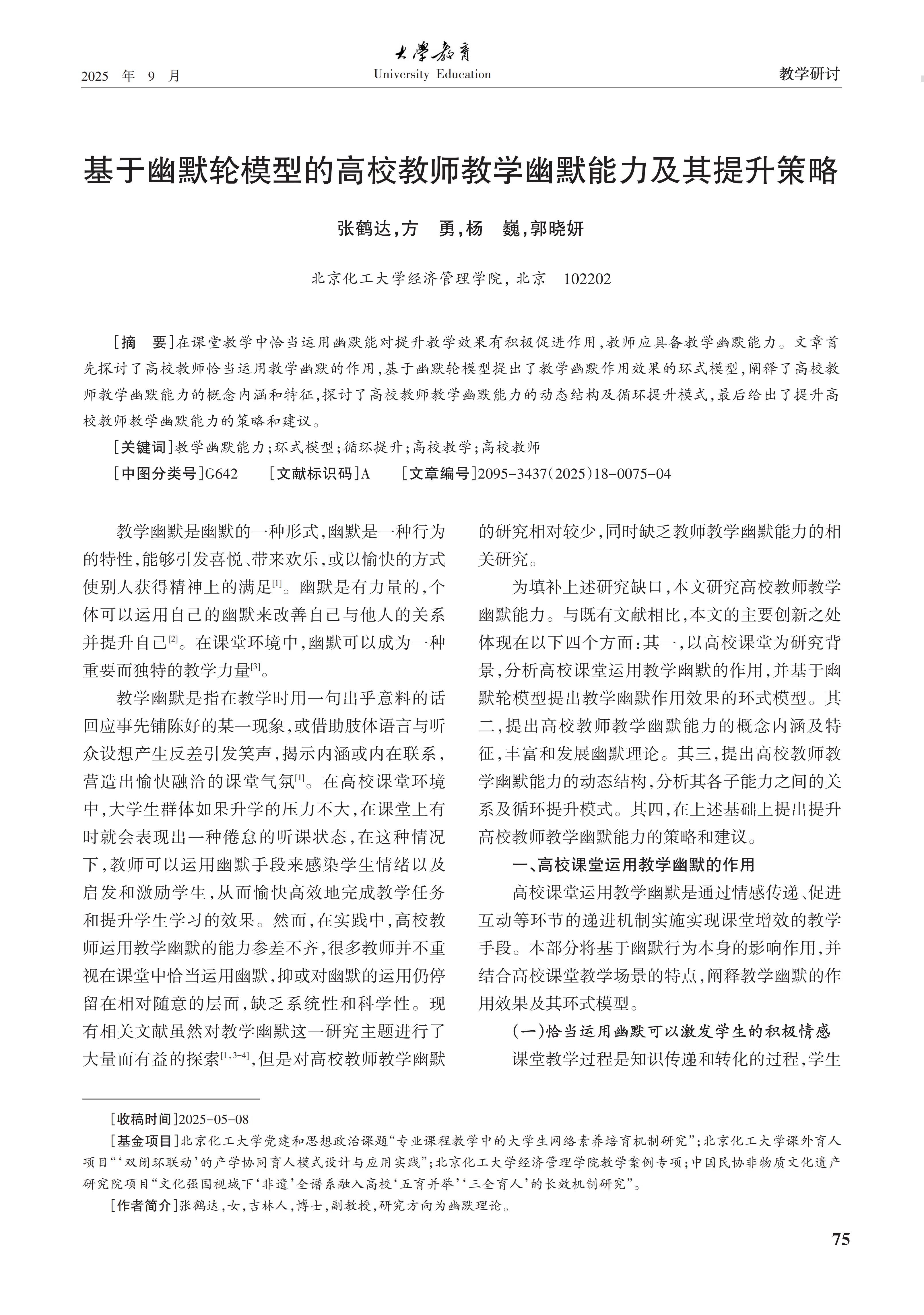 [2025-18]基于幽默轮模型的高校教师教学幽默能力及其提升策略