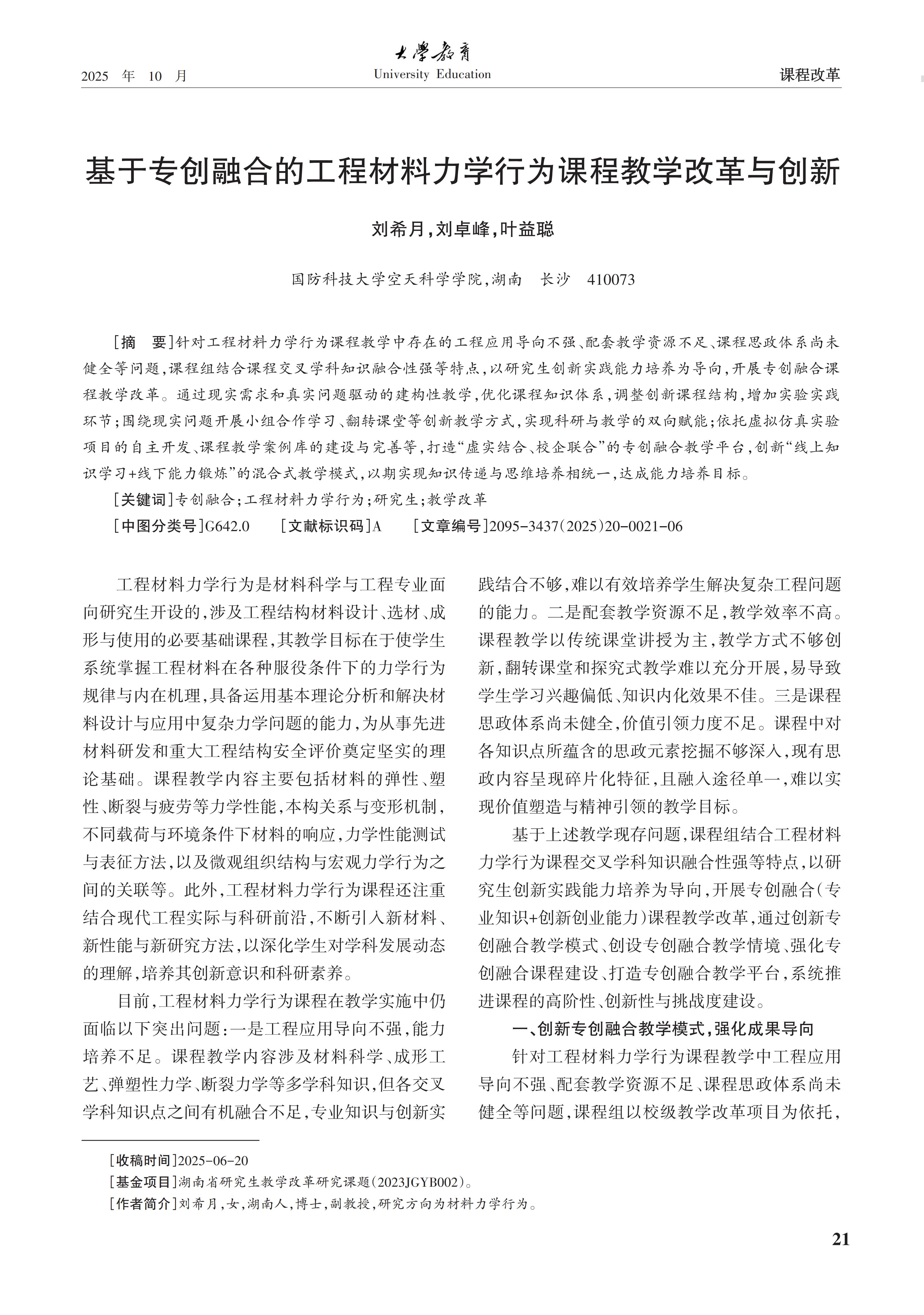 [2025-20]基于专创融合的工程材料力学行为课程教学改革与创新