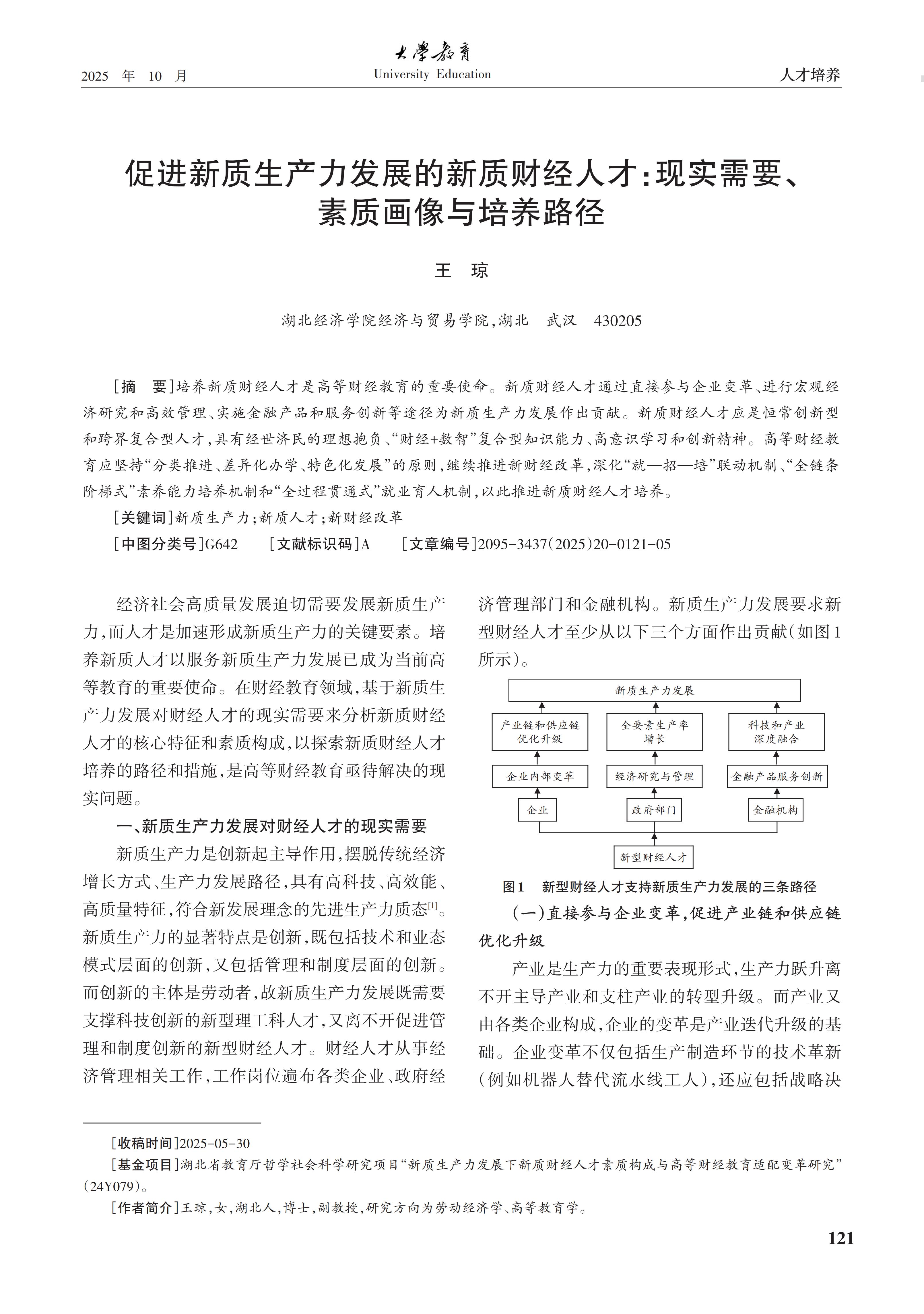 [2025-20]促进新质生产力发展的新质财经人才:现实需要、素质画像与培养路径