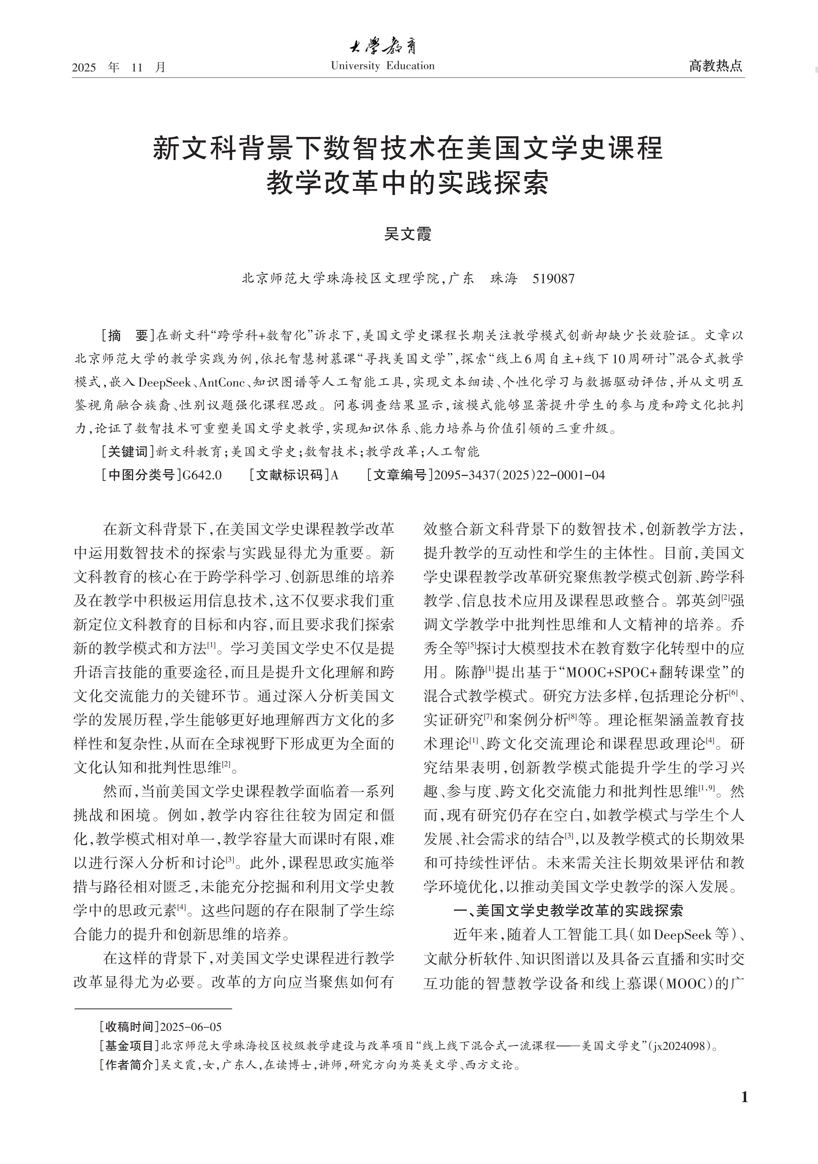 [2025-22]新文科背景下数智技术在美国文学史课程教学改革中的实践探索