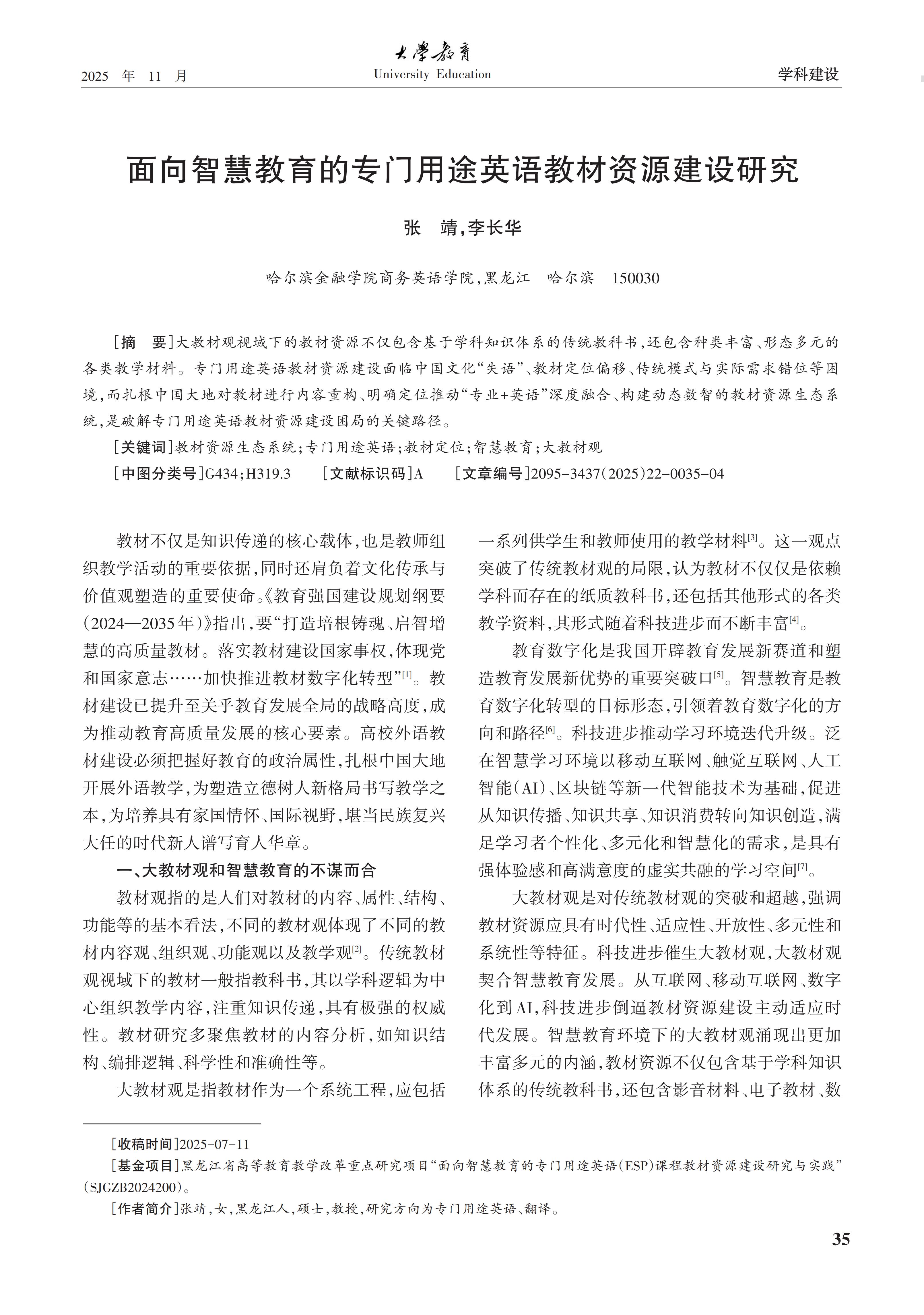 [2025-22]面向智慧教育的专门用途英语教材资源建设研究