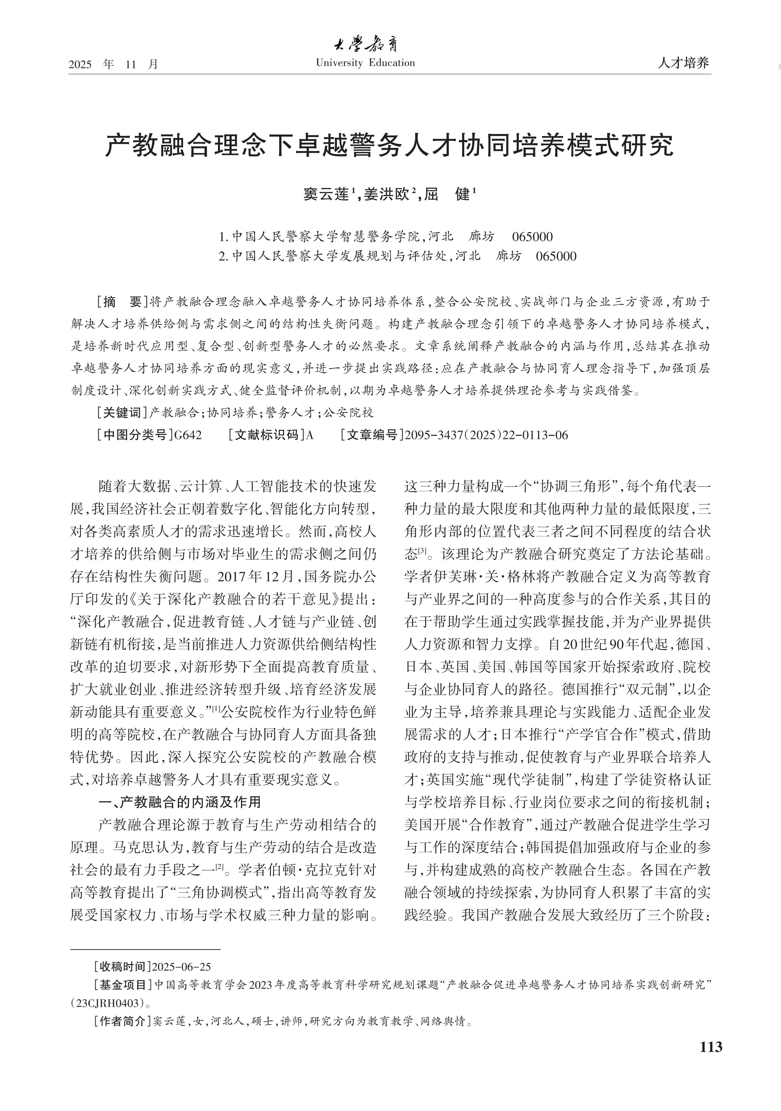 [2025-22]产教融合理念下卓越警务人才协同培养模式研究