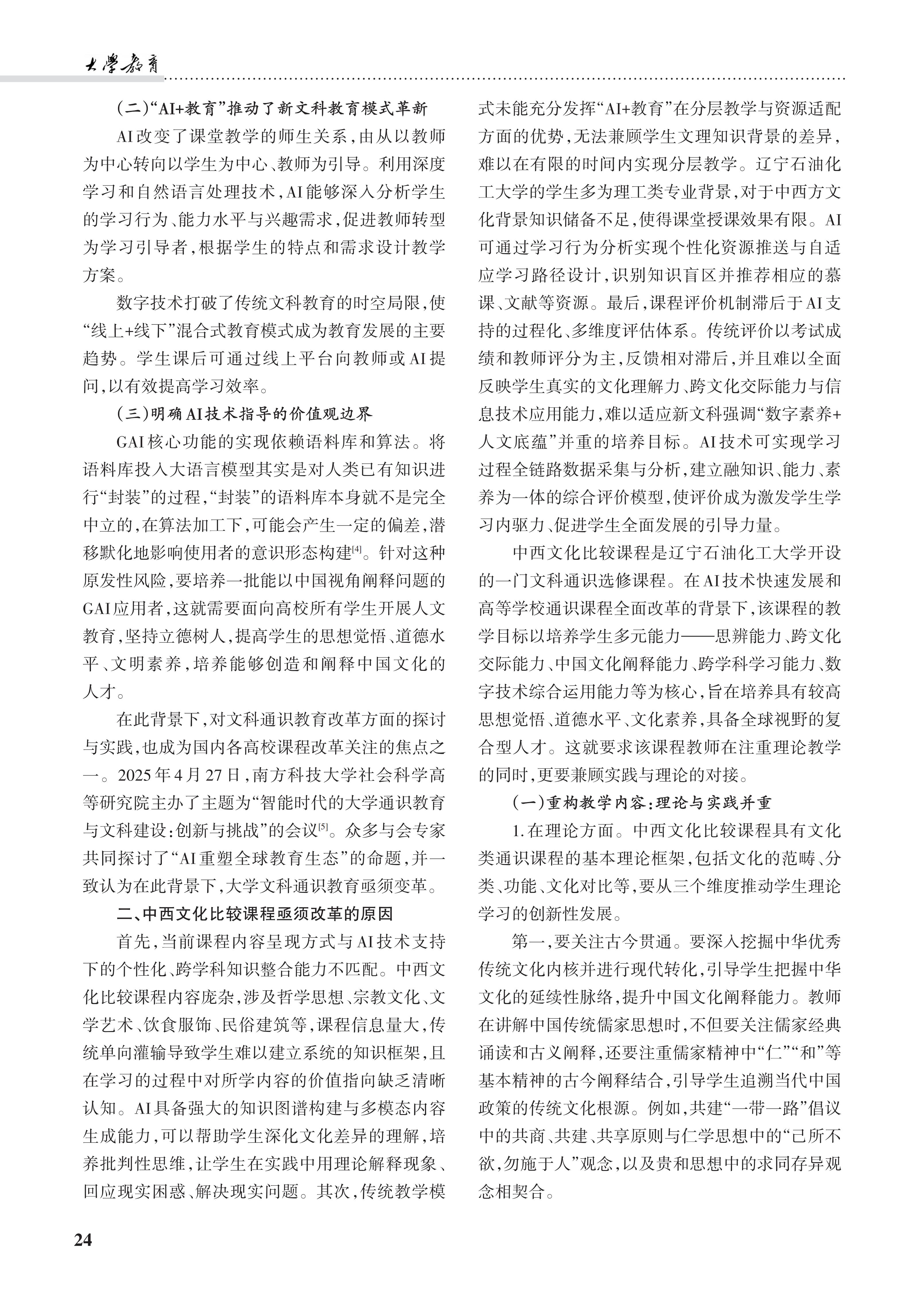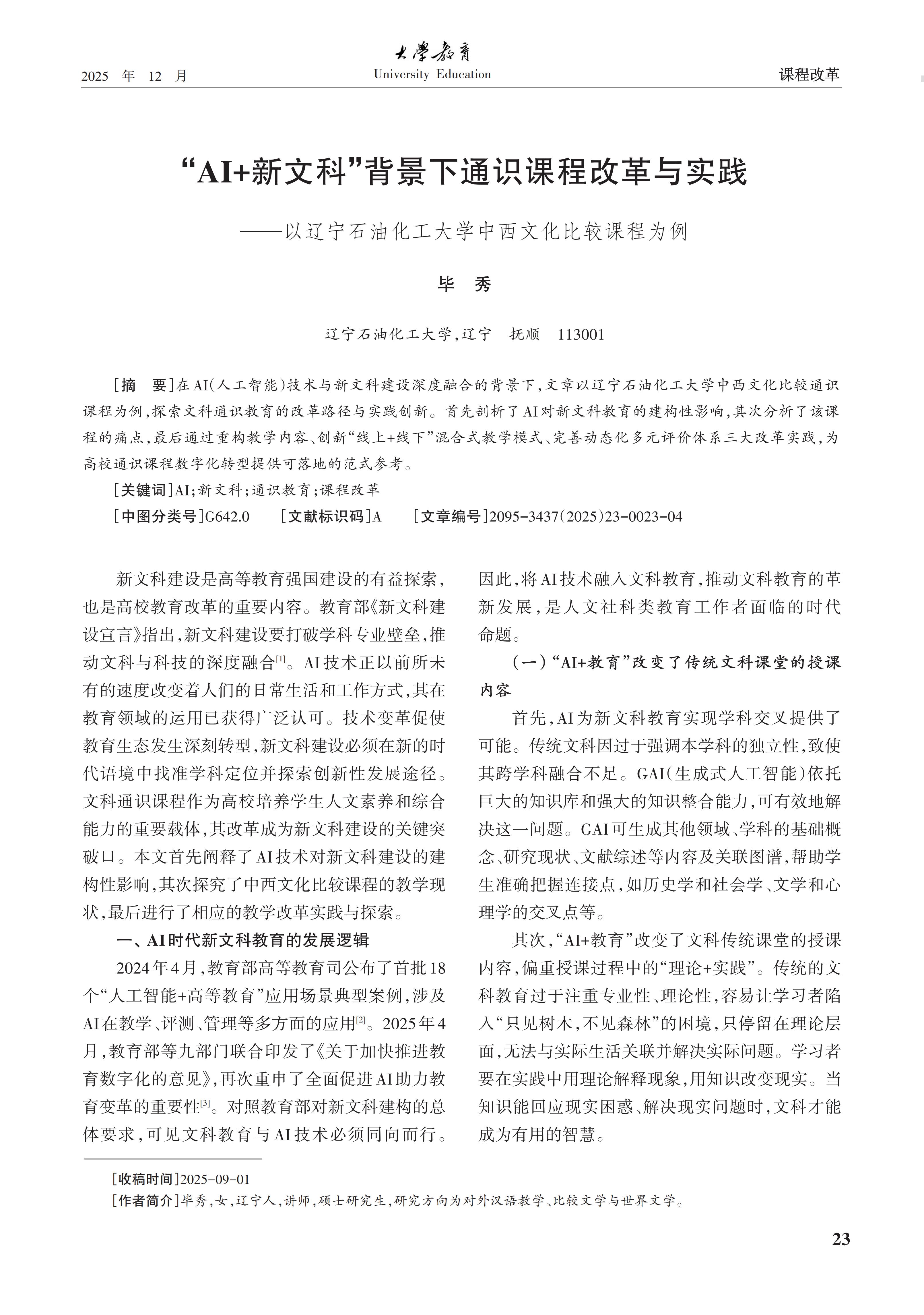 [2025-23]“AI+新文科”背景下通识课程改革与实践——以辽宁石油化工大学中西文化比较课程为例