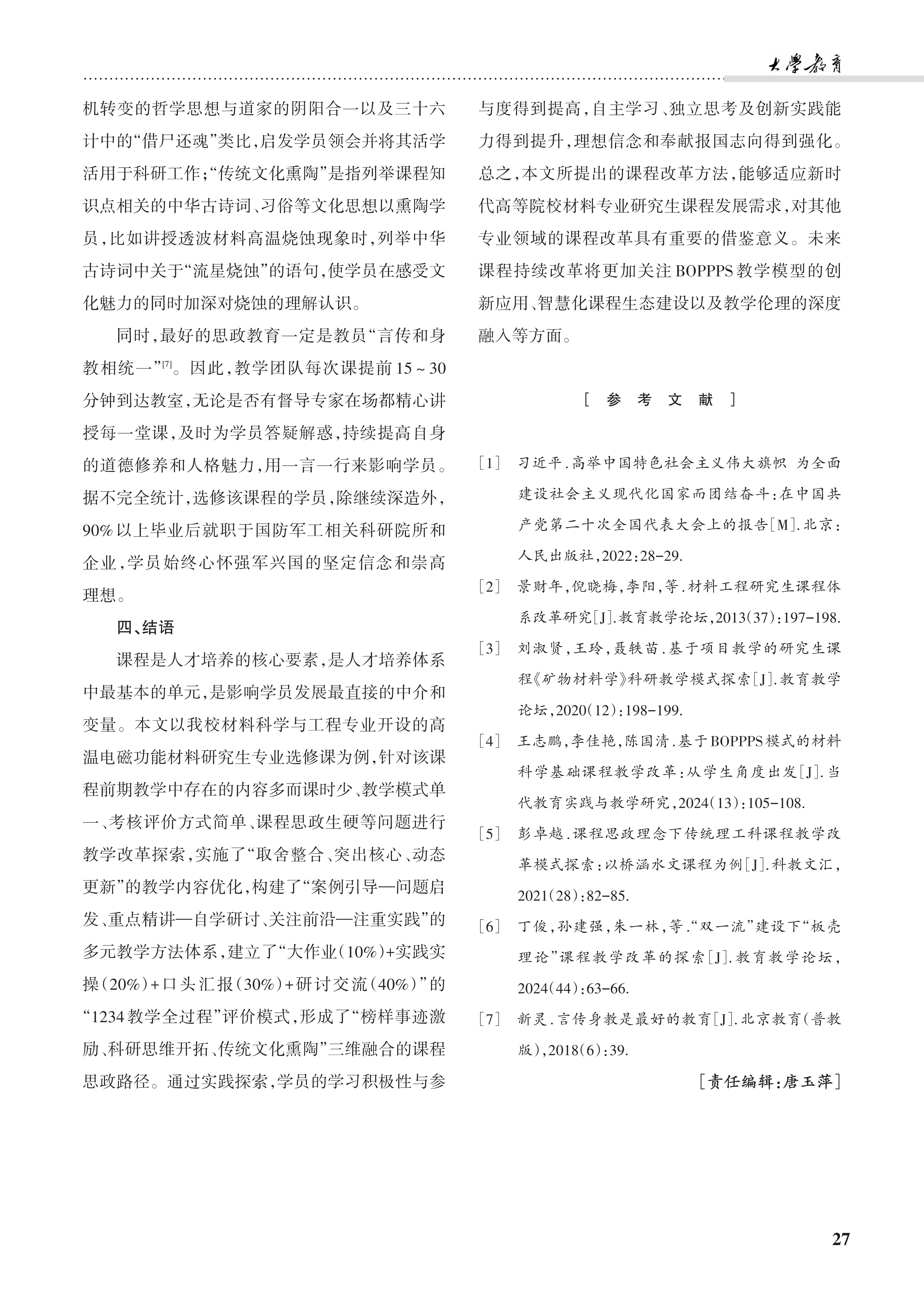 [2026-01]“专小精新”特色导向的材料类研究生专业选修课教学改革
