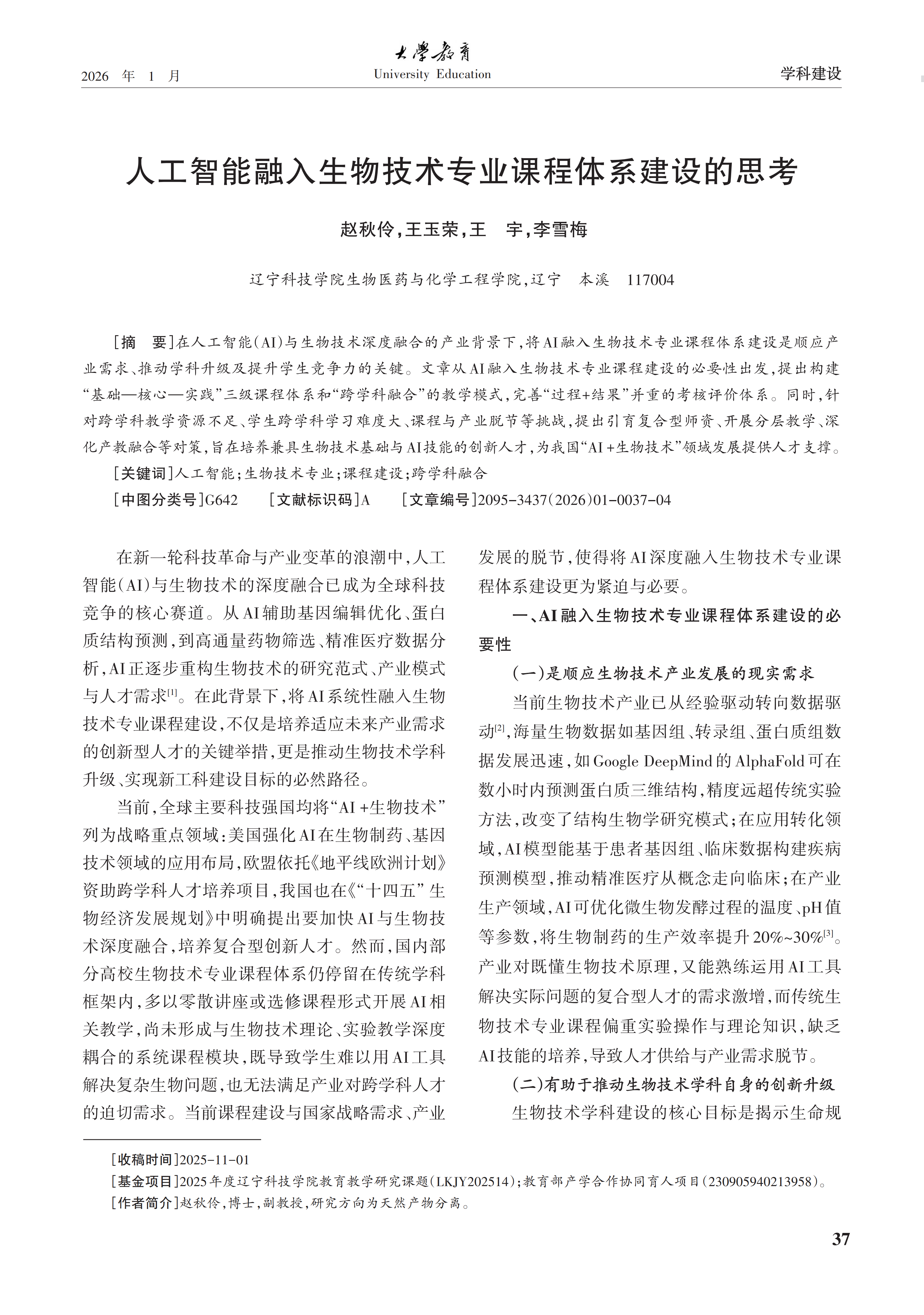 [2026-01]人工智能融入生物技术专业课程体系建设的思考