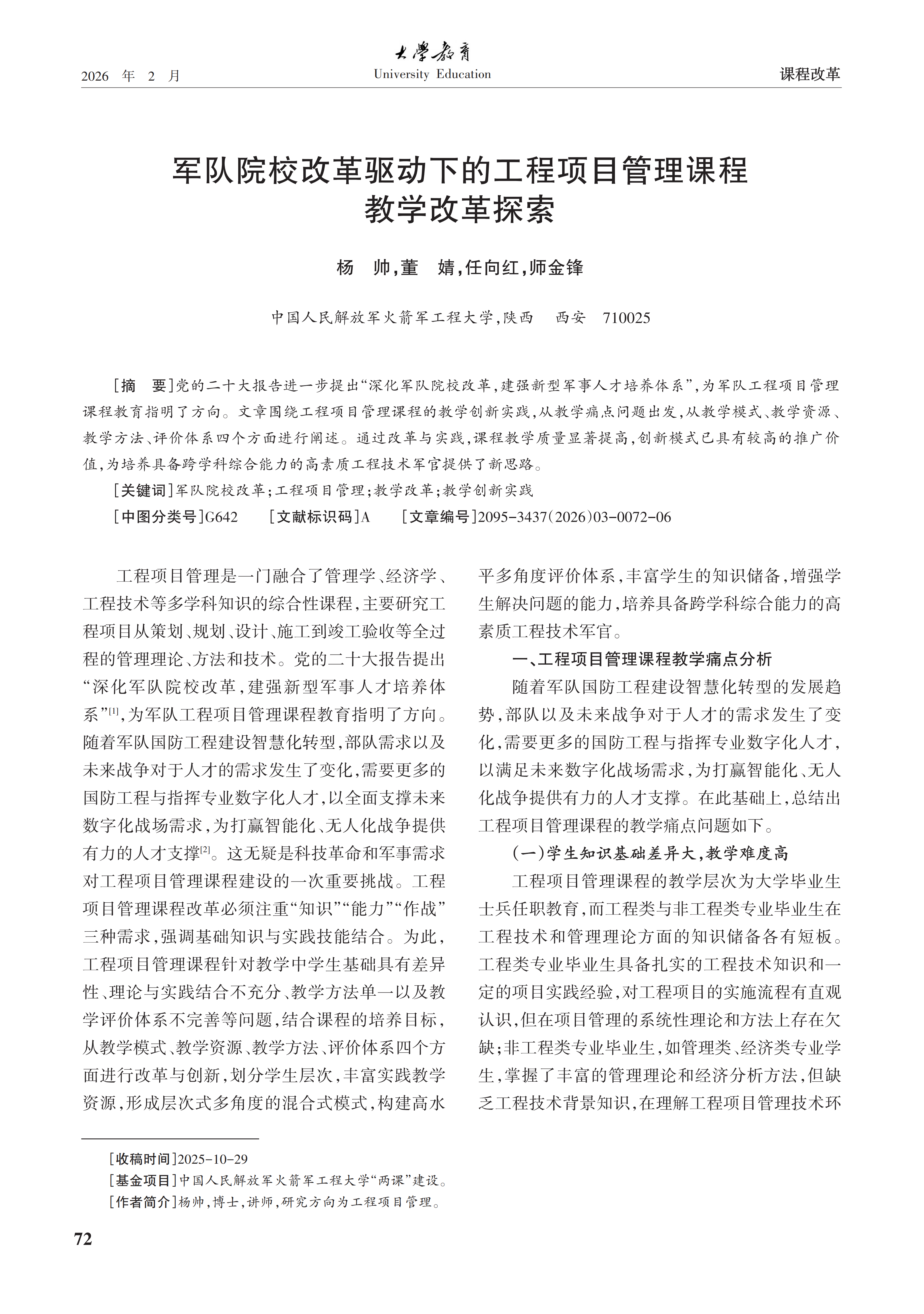 [2026-03]军队院校改革驱动下的工程项目管理课程教学改革探索